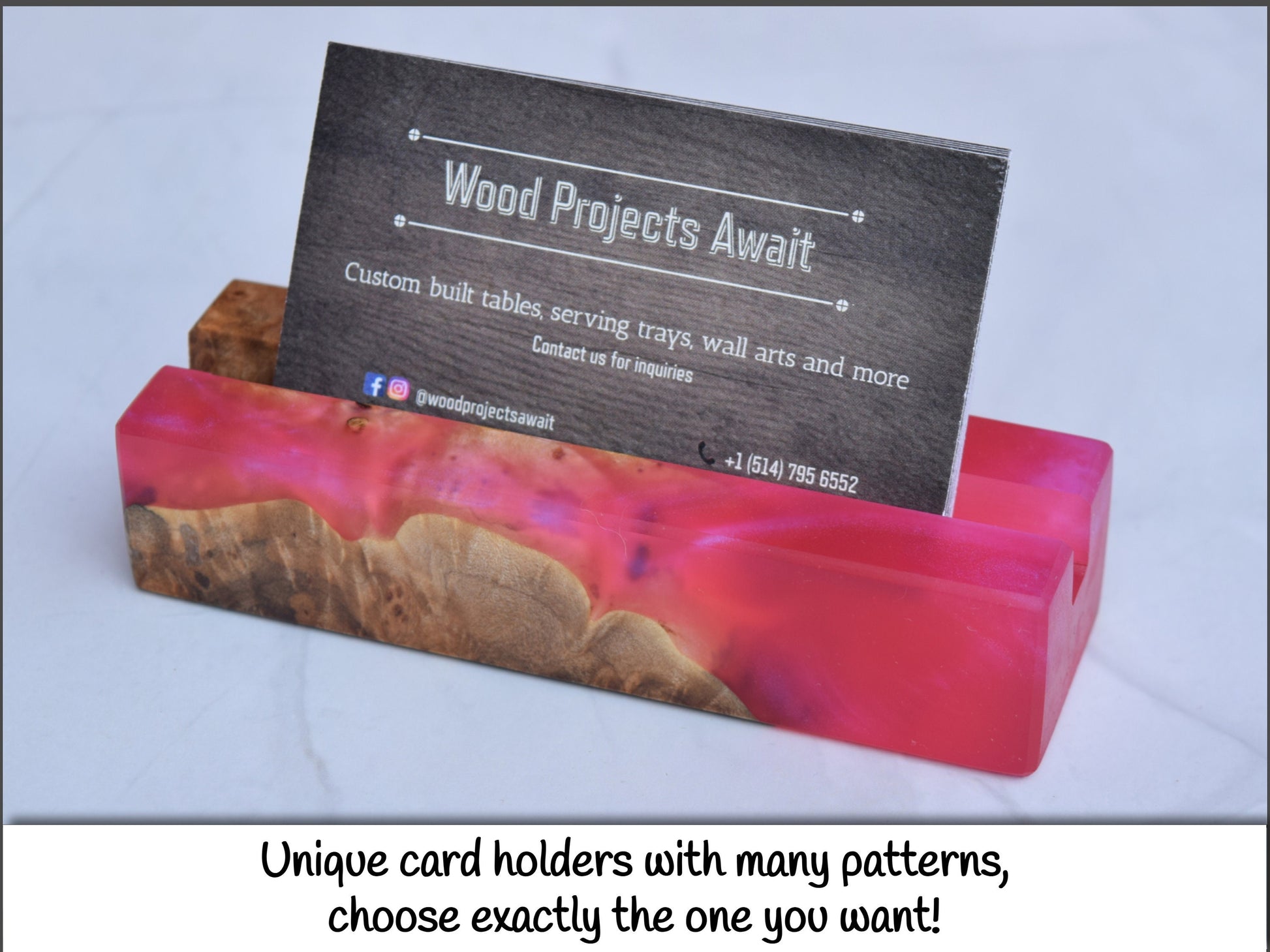 Wooden Epoxy Business Card Holder - Maple Burl - Pink