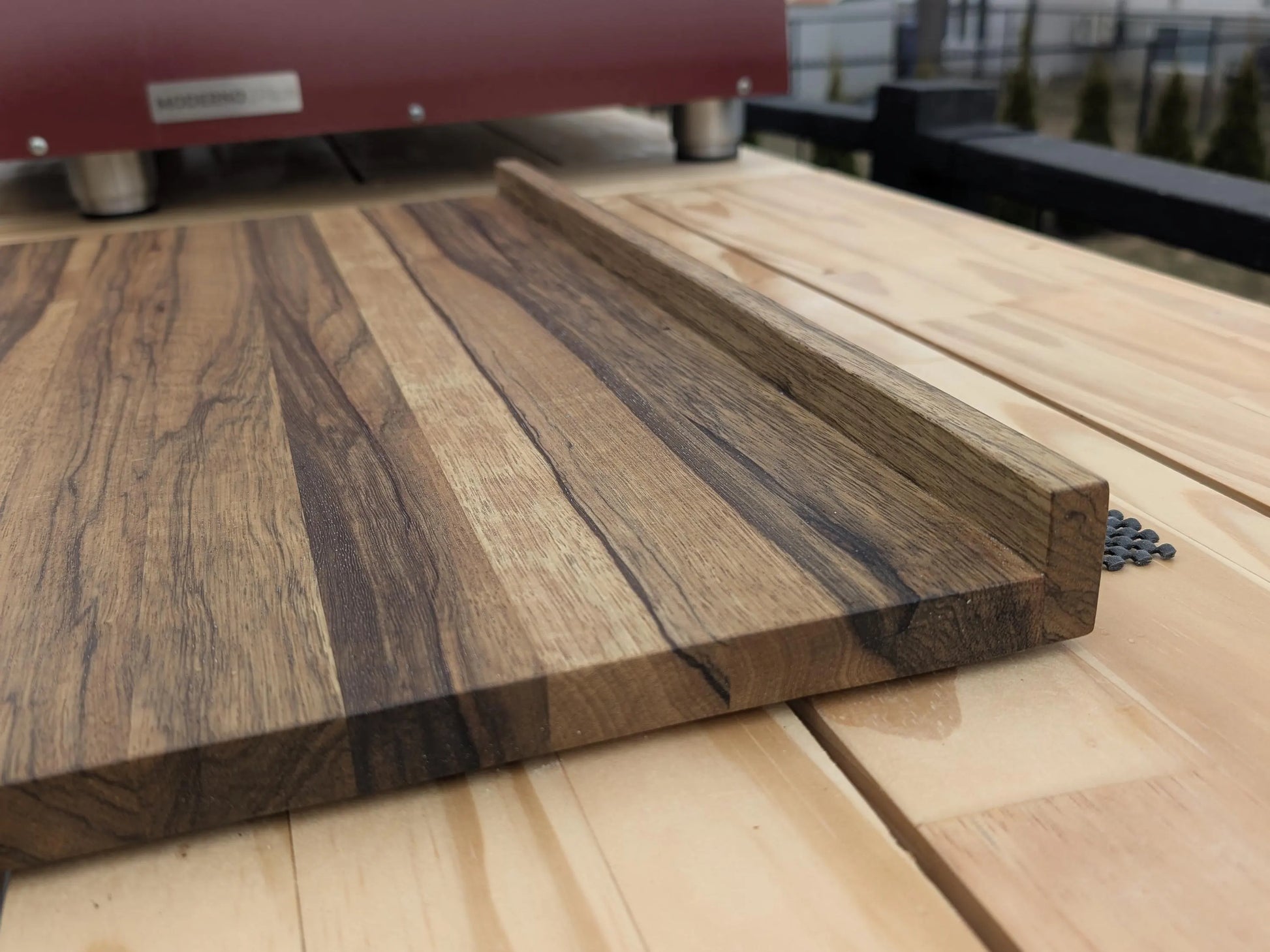 The board is sanded smooth and finished with a food safe finish (mineral oil and beeswax).