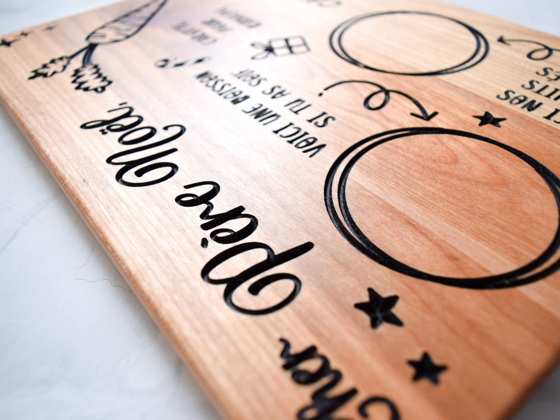 The details are carved into the wood and can be personalized with a name or names of your children or your family name!
