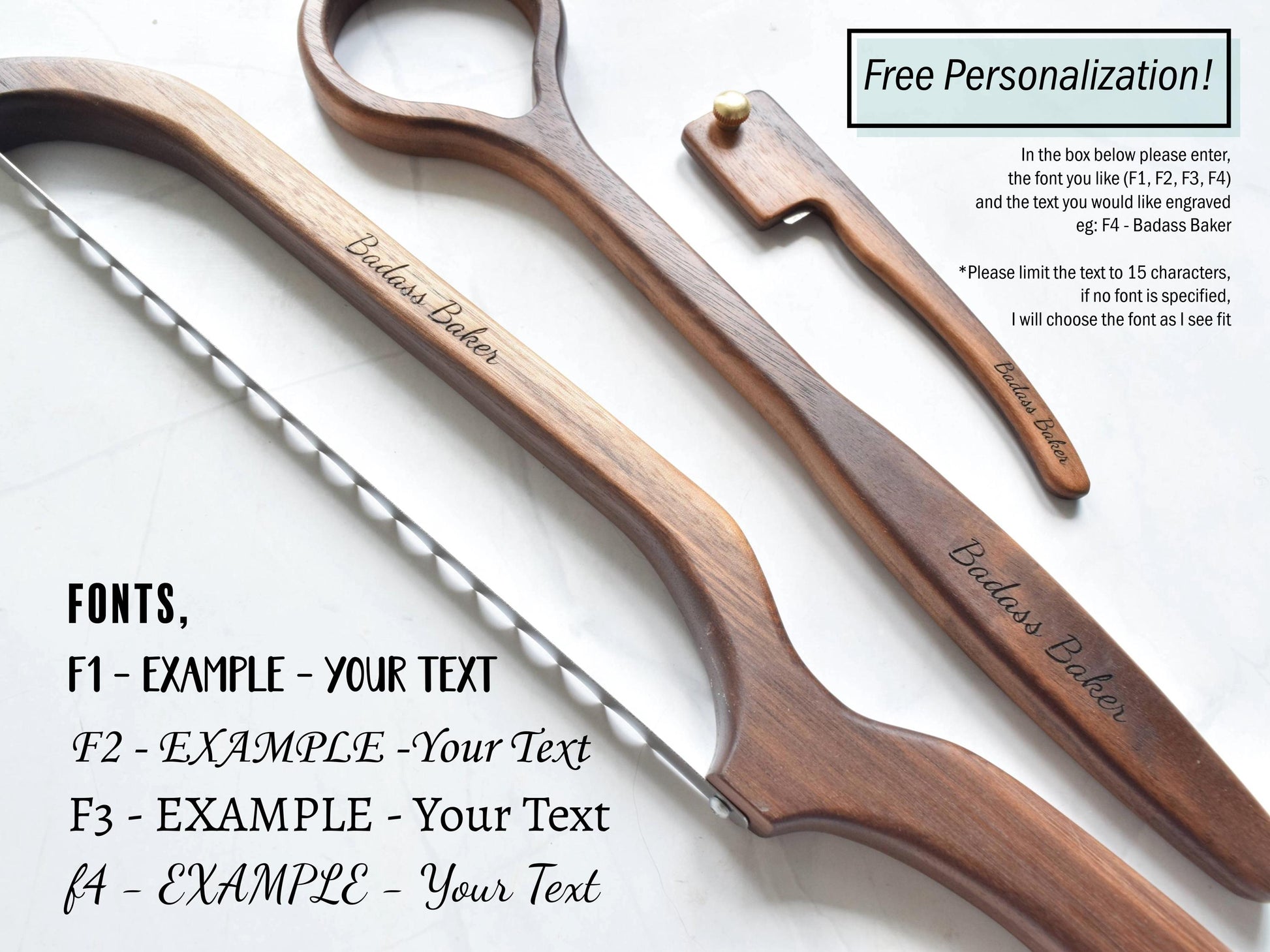 Personalized Walnut Bread Maker Set - Includes dough whisk, bread knife and a bread lame