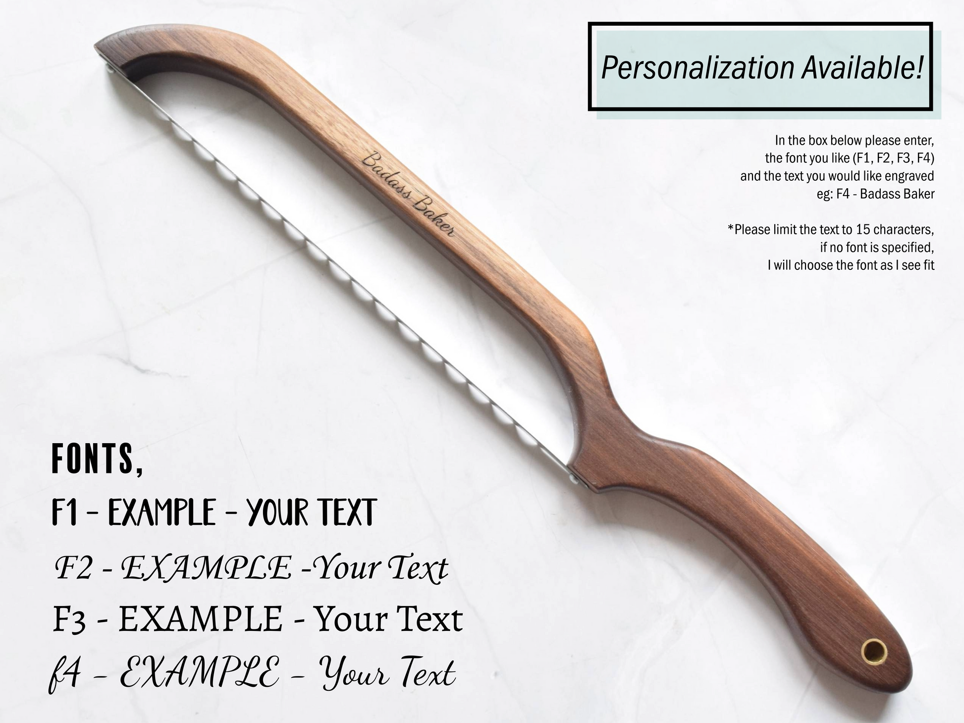 It will be a great addition to your kitchen tools! Blade is installed to be used as either a right-handed or left-handed bread knife. It is available in various different hardwoods! It would make a great gift for a baker!